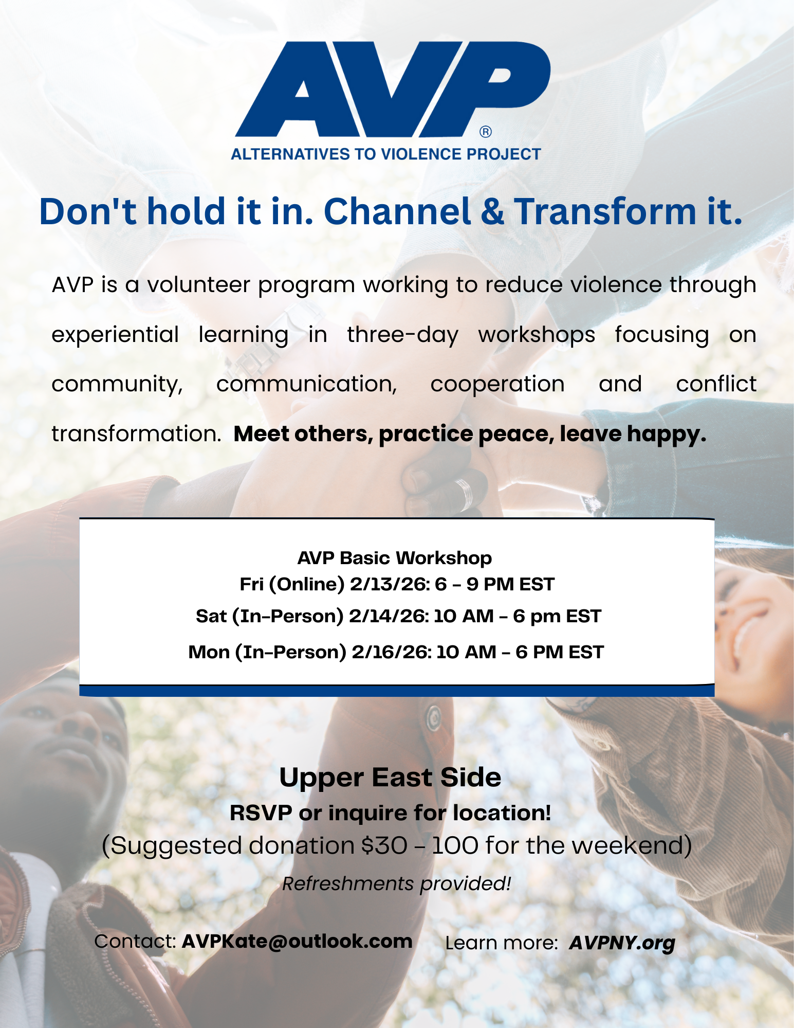 Alternatives to Violence Project New York is a grassroots volunteer organization dedicated to reducing