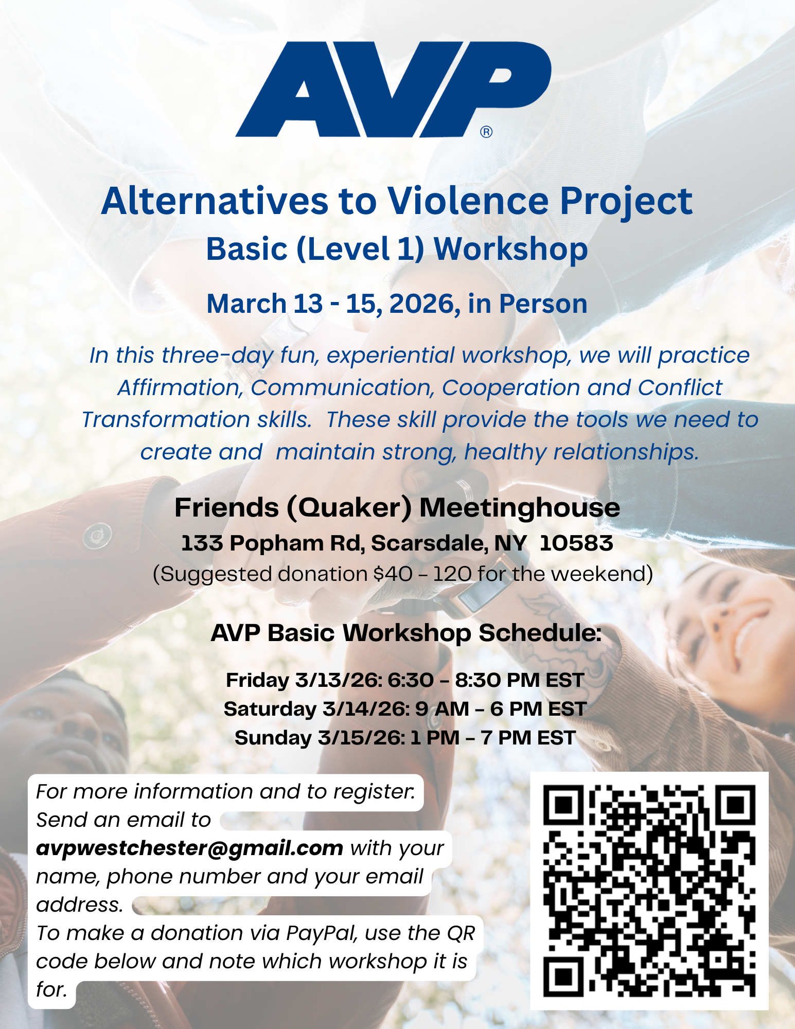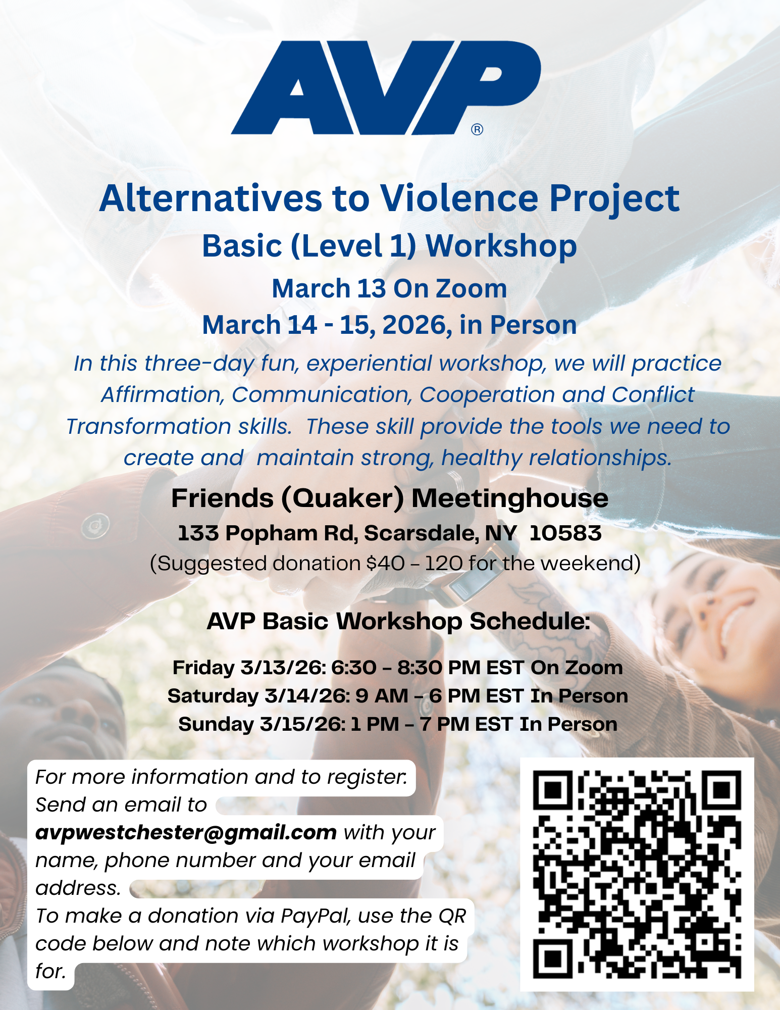 MARCH 13-15, 2026, SCARSDALE FRIENDS (QUAKER) MEETINGHOUSE, SCARSDALE, NY
